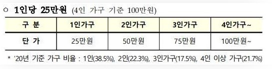 가구당 지급이 아니기 떄문에 인원수에 따라서 지급이 됩니다.